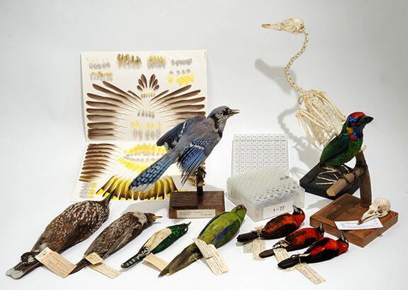 Die ornithologische Sammlung besteht vorwiegend aus Bälgen, Montagen, Skeletten, Eiern und Gewebeproben. Geografische Schwerpunkte sind die europäische, insbesondere die Schweizer sowie die südamerikanische Vogelfauna. Wichtige historische Sammlungen bekannter Ornithologen bilden die Basis der Sammlung, die kontinuierlich erweitert wird.